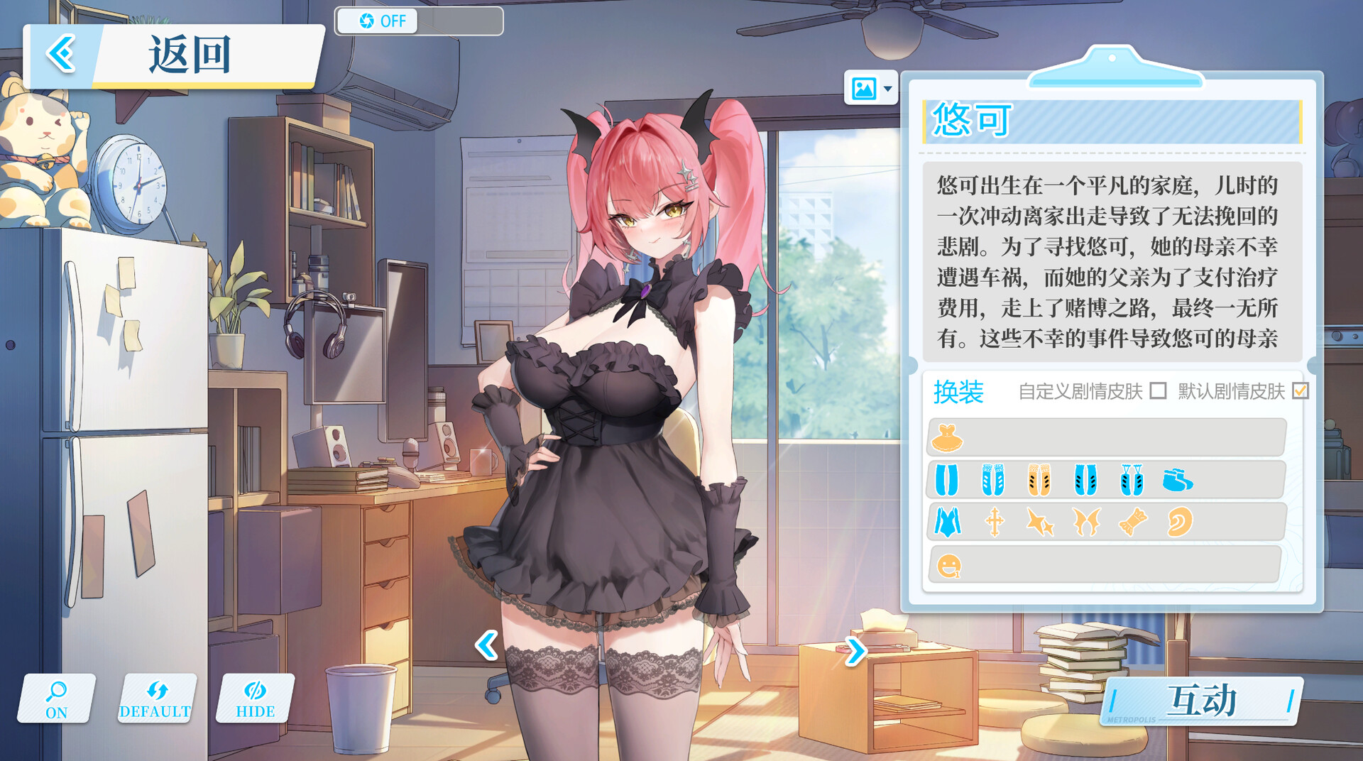 强势是她的保护色,她对外界总是一副凶狠的样子,从不会接受任何人的好意。但在工作时,却会装作一副可爱,平易近人的性感,性格比较偏向于傲娇