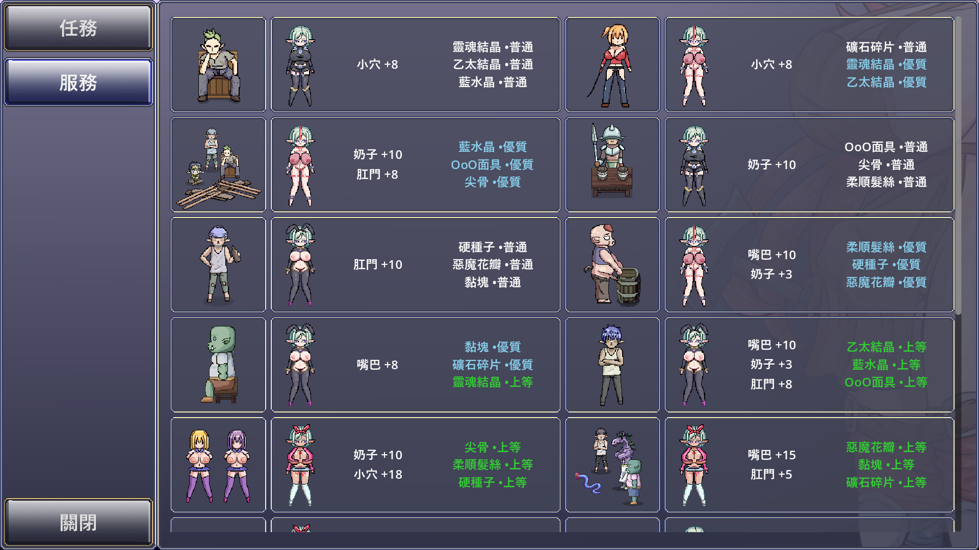 各種變態小遊戲和露骨的劇情。25+獨特、無修正、重口味的CG和15+獨特的像素色色動畫等待你發現。這款遊戲專注於奇幻和重口味,不適合只想要性感愛情故事的人!
