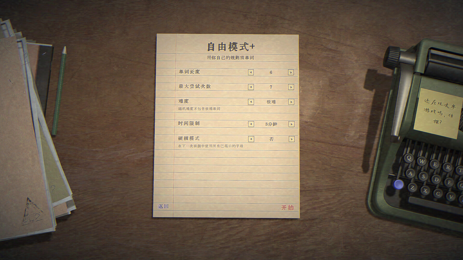 自由模式:根据喜好设定词语长度、解谜难度、尝试次数以及是否限时,自由练习猜词技巧