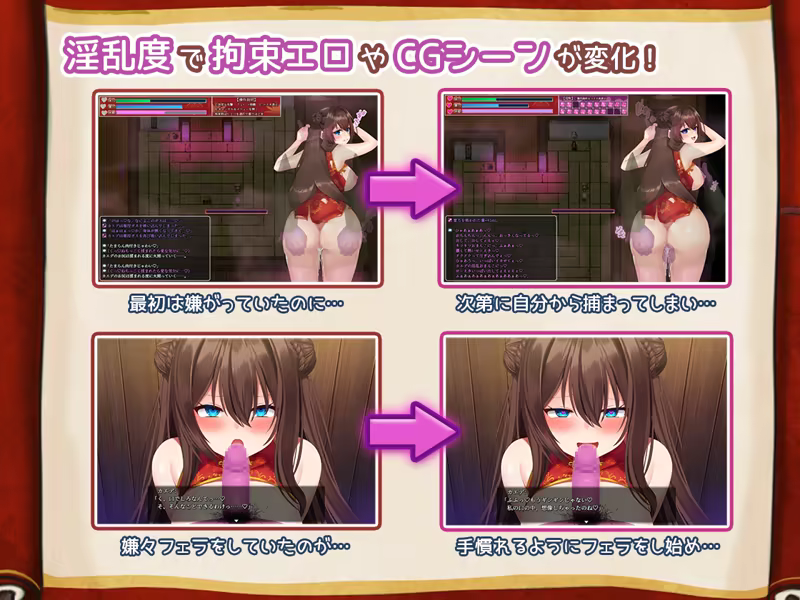 当淫乱度上升后,枫的反应将发生变化,CG、束缚姿势、喘息声等都会变得更加淫靡。