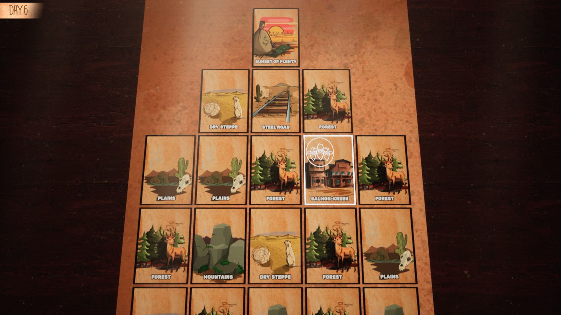 全球地图。在狂野西部谨慎规划你的路线,同时要考虑七大罪人的状况和你的补给。