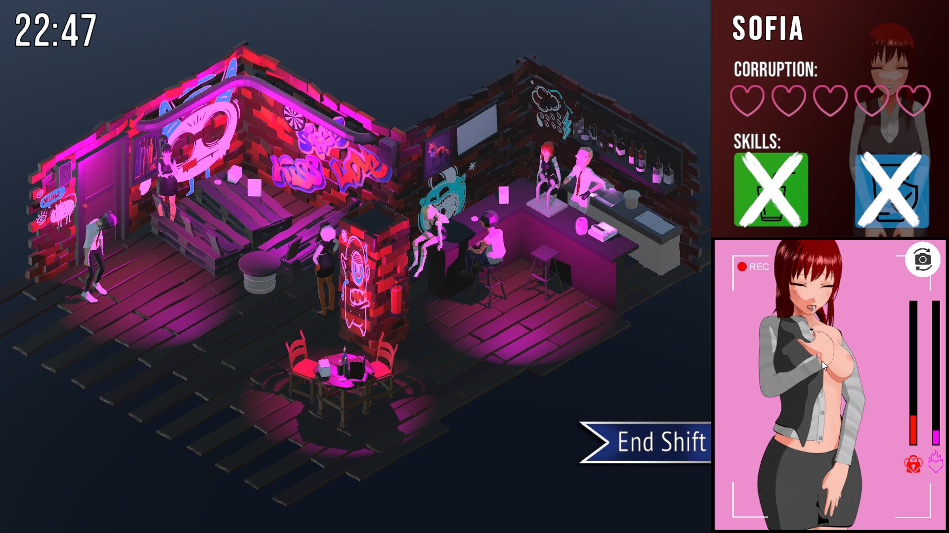 《Nightlife》融合了经营玩法与视觉小说叙事,挑战你不仅要成功经营,还要揭开每位走进你酒吧的女孩隐藏的情感与欲望。