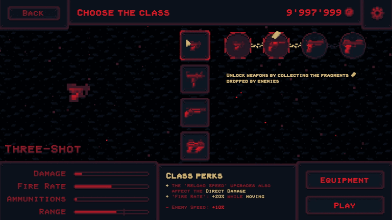 携带最多11把武器同时使用,通过消灭越来越强的敌人来提升它们。