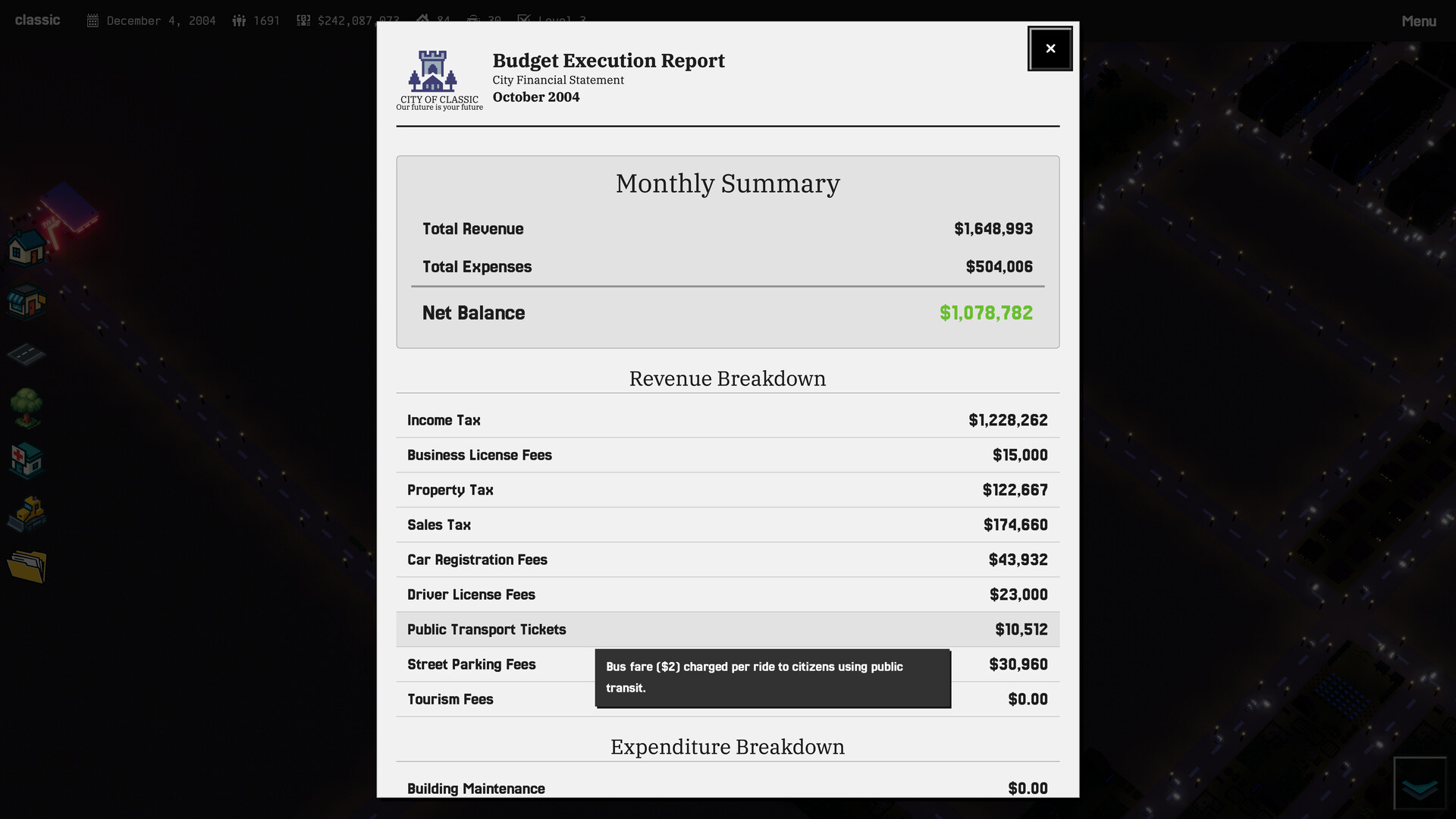 你可以全面掌控个人所得税、销售税和企业税。你可以收取营业执照费、公交车费、停车费等各种费用。任何费率定得太高,都会导致生活成本令人难以承受;定得太低,你的城市又会破产。每一个选项都会塑造城市的经济格局,而如果没有财政收入,你就无法为公共设施与服务提供资金。
