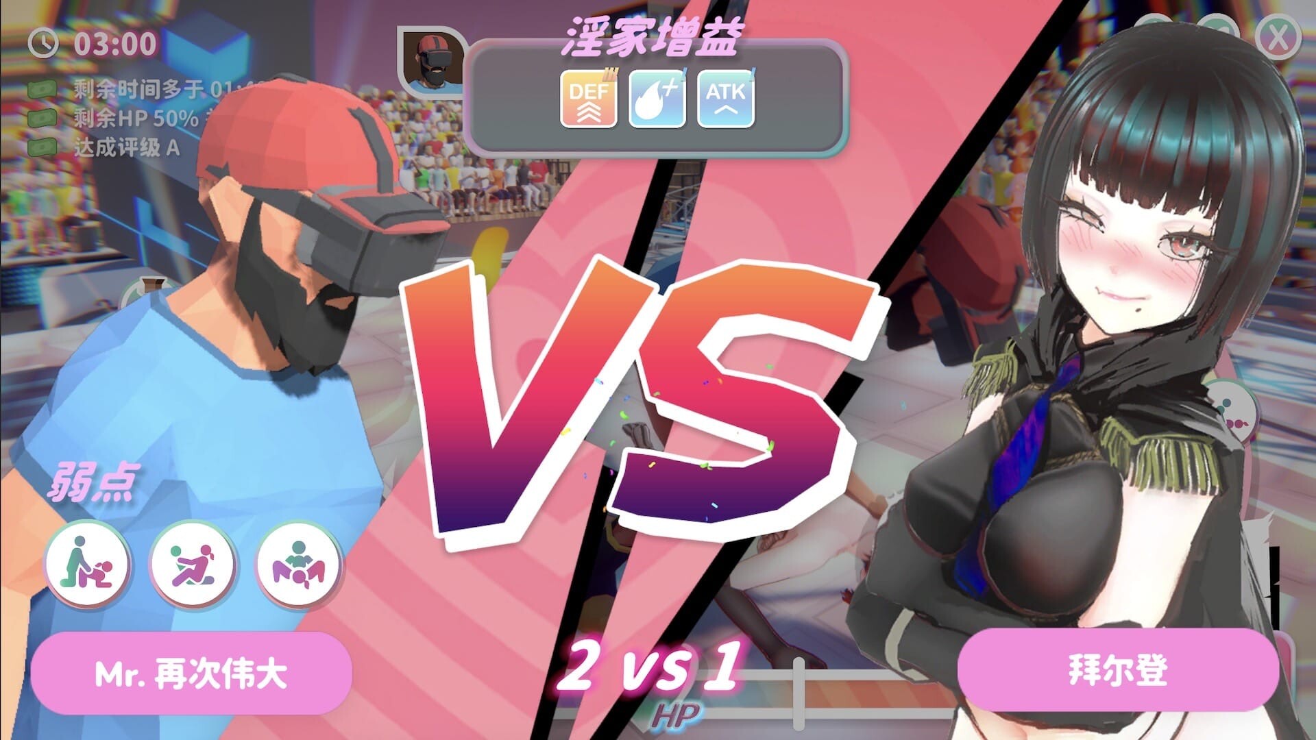 在U.F.F.C比赛中,你将挑战形形色色的对手,从当地流浪汉到世界领袖,应有尽有。每位挑战者都有独特的个性和特质,确保每场【交流】都能带来全新色色的体验。你将不断晋级联赛,解锁新的挑战,或透过累积「关税」来巩固特朗姆作为终极冠军的地位。掌握各种独特的姿势、技能和子技能,并获得SSS等级以提升你的分数和关税。每场比赛结束后,你可以选择实行[ICE驱除作战]来驱除帝国的非法怪物并以此获得更多资金,[学习]你的私密技能来提升你的色色表现,或在[画廊]记忆你的记忆来揭开隐藏的故事,最终解锁神秘角色。