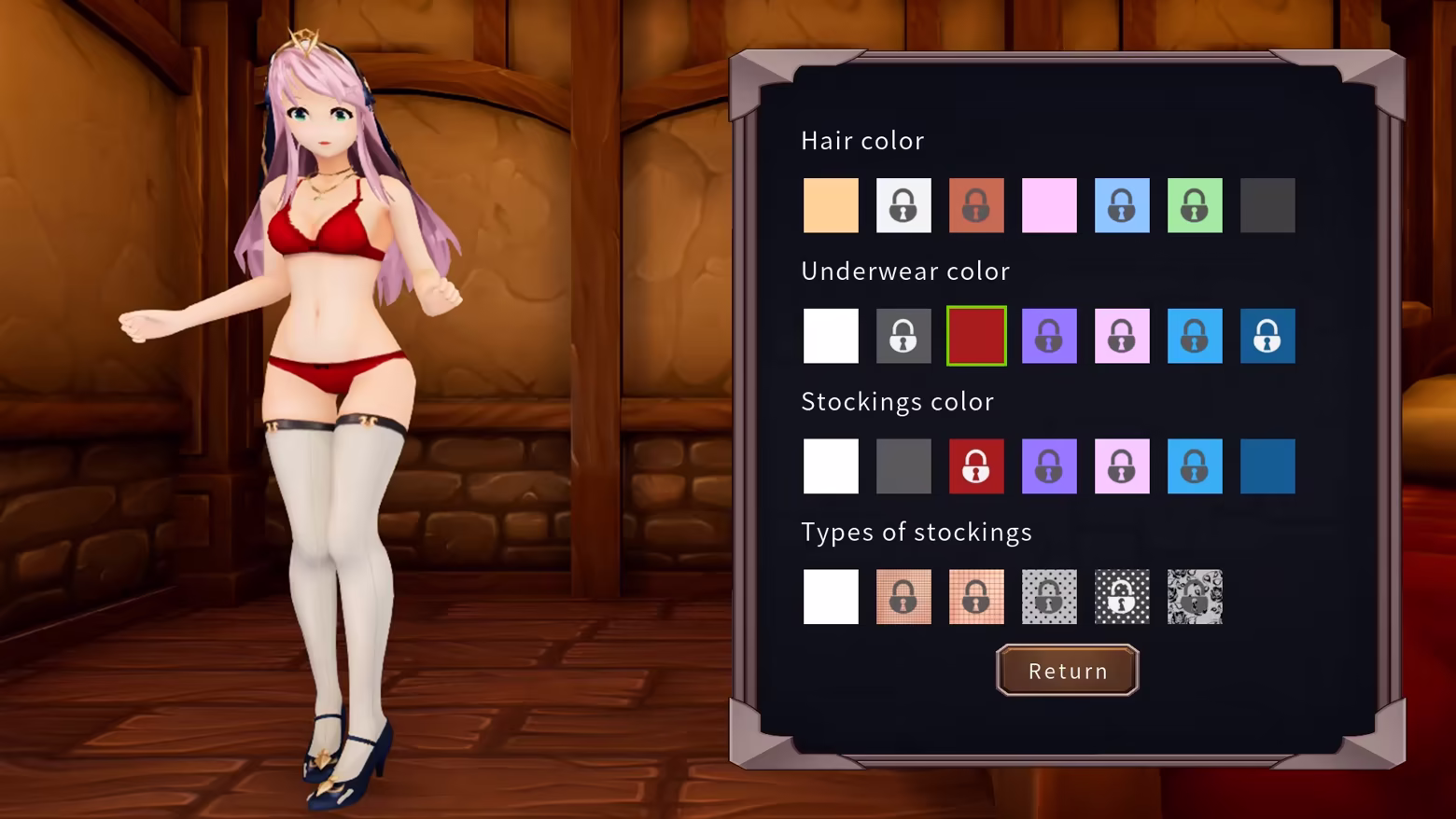 消耗剩余的金币,可以购买角色的发色、内衣颜色以及丝袜样式。