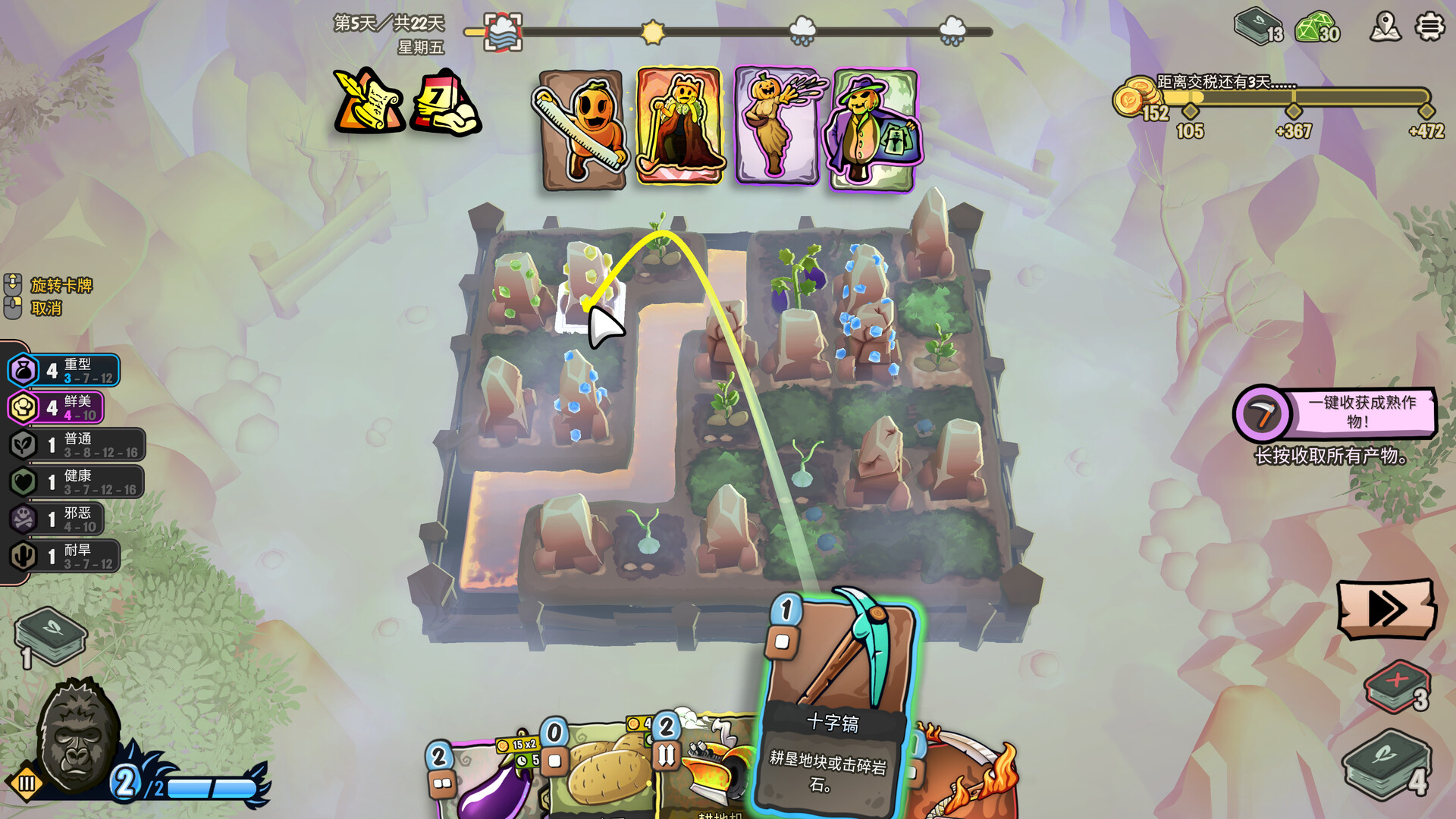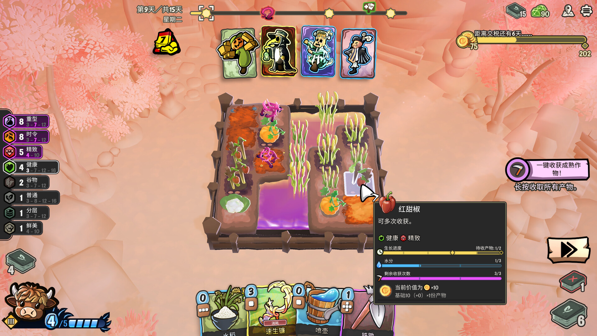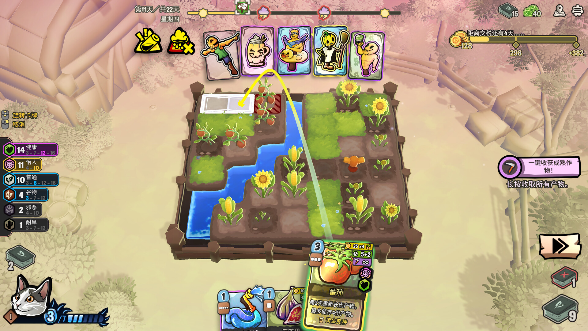 在这款温馨治愈的农场题材轻度Rogue牌组构建游戏中,尽享播种、培育与丰收的乐趣。